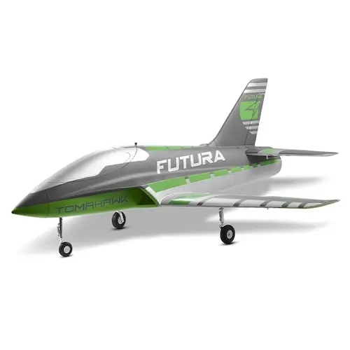 Die FMS Futura 64mm ist ein lizenzierter Sportjet, der von FMS in Zusammenarbeit mit Tomahawk Aviation entwickelt wurde. Ausgestattet mit einem 64mm Impeller, eingebauter Elektronik und einem robusten Metall-Fahrwerk kommt die FMS Futura nahezu flugfertig aus der Box.